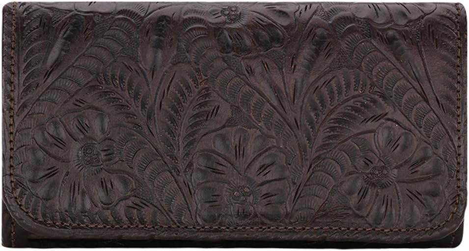 American West Women's Tri-Fold Leather Wallet Billfold for Women