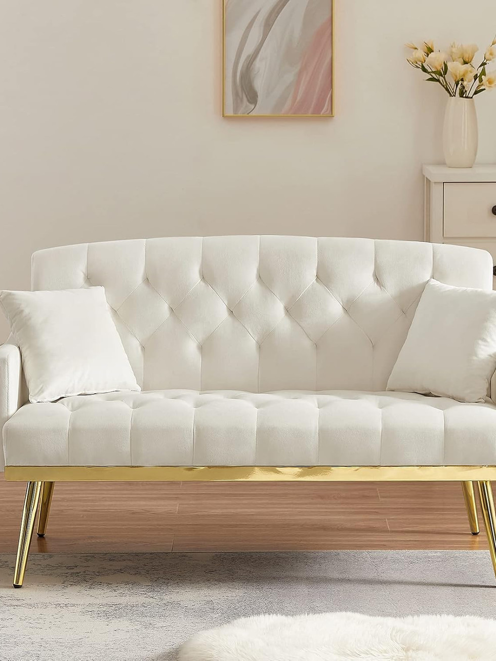 ★【500 LBS Weight Capacity】 The overall frame construction is sturdy and durable, and the tapered metal legs at the bottom provide strong support and can hold up to 500 pounds. Adjustable caps make the small couch more stable and won't scratch your floor. The installation is very simple, and there will be no installation hassles.