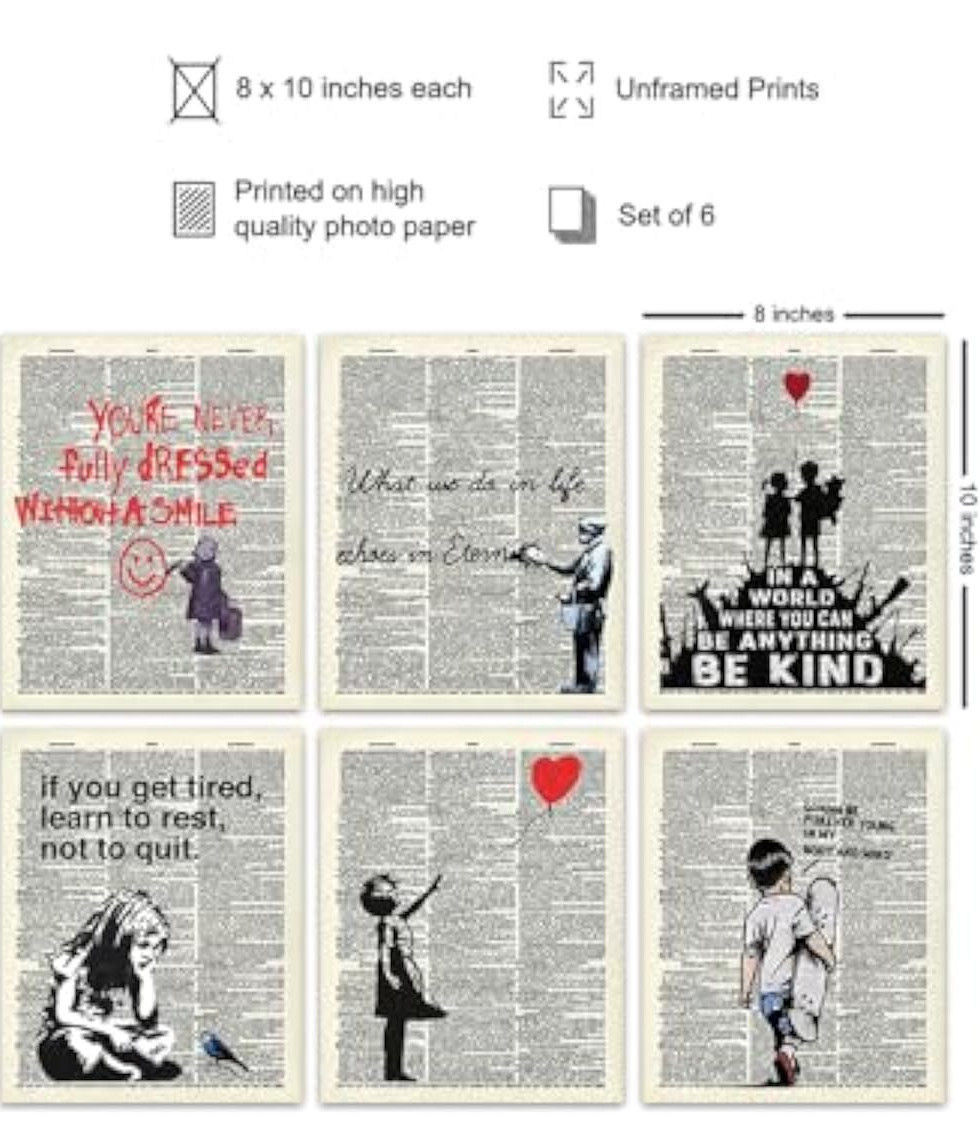 Banksy Wall Art Set - Inspirational Quotes Room Decor - Motivational Graffiti S