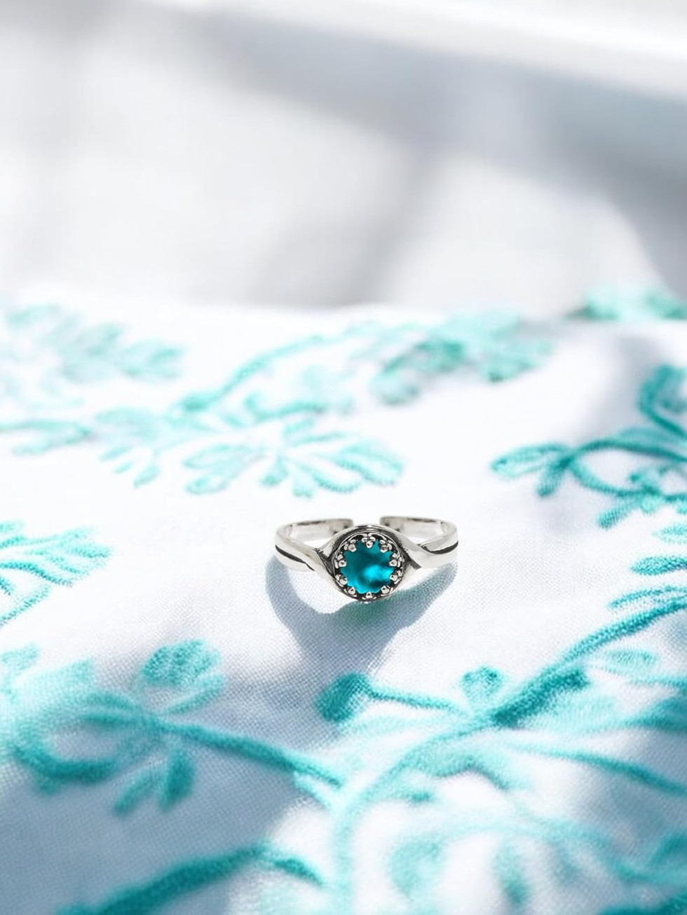 High-Quality Sterling Silver Twist Setting – The glowing glass gem is set in a durable sterling silver band with a distinctive twist design that enhances the prong-set glass, providing a perfect combination of modern craftsmanship and vintage charm. The sterling silver ensures long-lasting wear and timeless style.