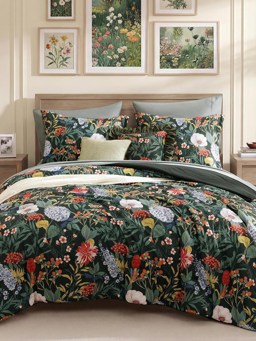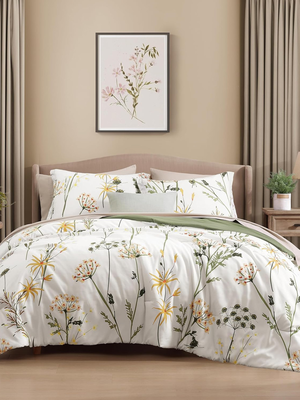 Unique Floral Design: Create a cozy vibe for your bedroom with our green floral comforter set, framed by vibrant printing flower-and-Butterfly patterns. The exquisite crafting techniques and the premium fabric are used to display the vivid farmhouse style, not only the lovely scenery you will enjoy, but also the soft texture of our comforter