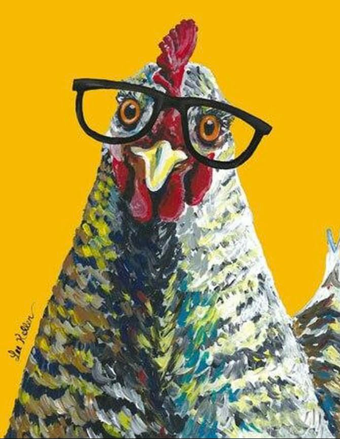 - Chicken With Sign features original artwork by NC artist Lee Keller