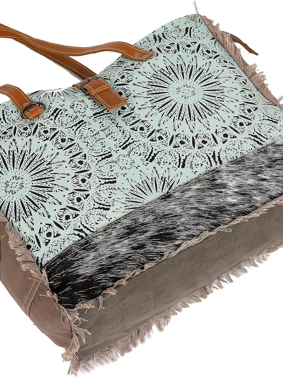 CLA Large Canvas Bag, Multicolor, Cowhide Hair On Leather With Upcycle Canvas H