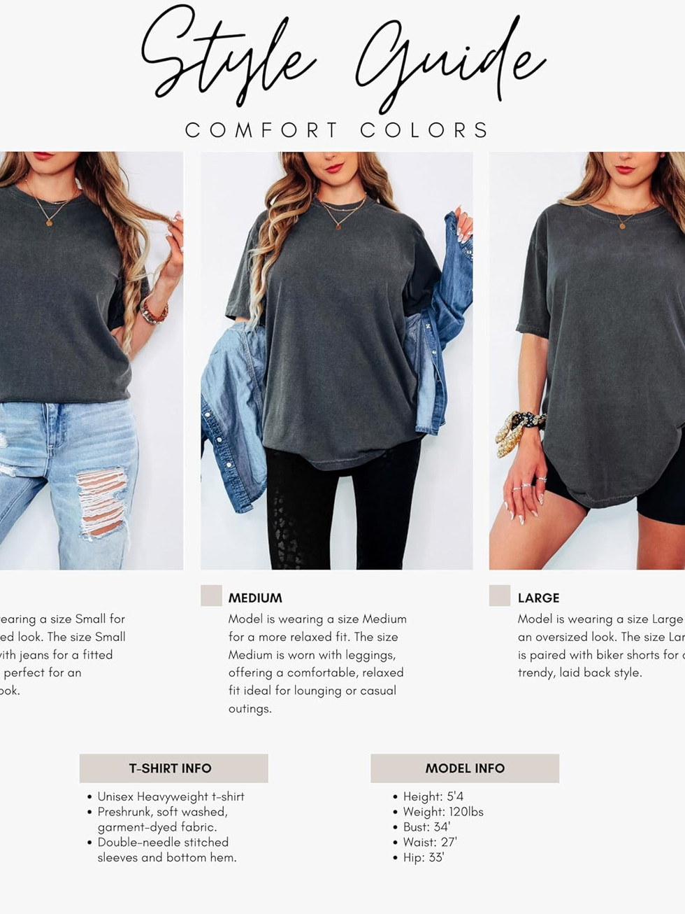 Relaxed Fit: These cute graphic tees are designed with a unisex cut, which means they run slightly more fitted than a typical women’s tee. For an oversized, more relaxed look, we recommend checking the size chart and ordering 1 or 2 size up. It’s the perfect blend of comfy and stylish — just the way you like it!