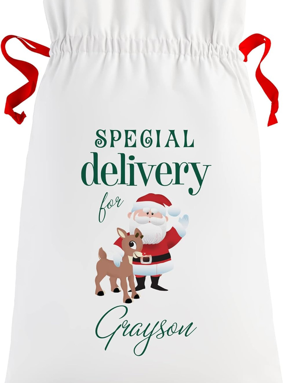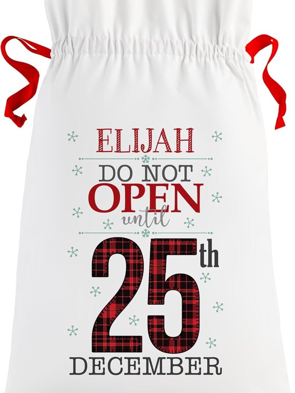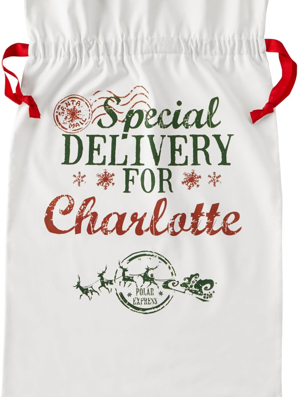 A CHEERY GIFT: Ideal for all kids—or kids at heart—at Christmas, this personalized oversized gift bag is sure to be the first present they want to open.