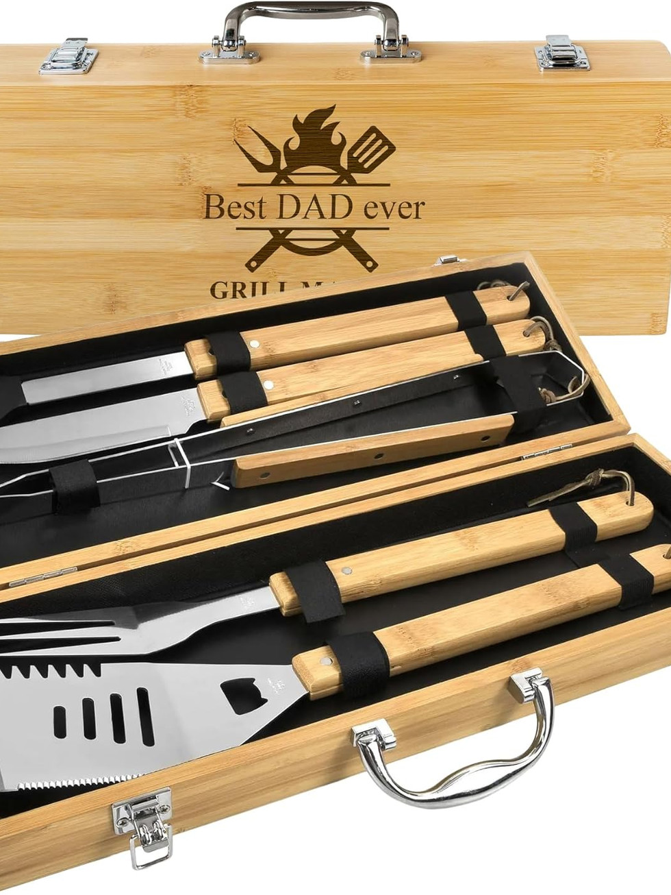 Personalized BBQ set box for men, custom engraved name outdoor cooking barbecue