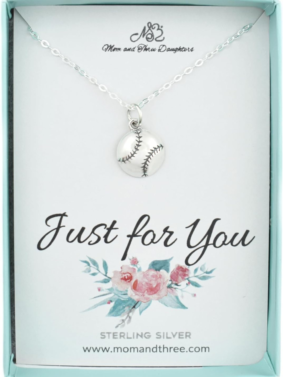 A softball necklace in sterling silver offers a blend of sporty enthusiasm and refined elegance. The cool, bright tone of the silver complements various skin tones and outfits. It's a durable piece that can be worn daily as a subtle yet meaningful expression of a love for softball, or saved for special occasions to showcase that passion.