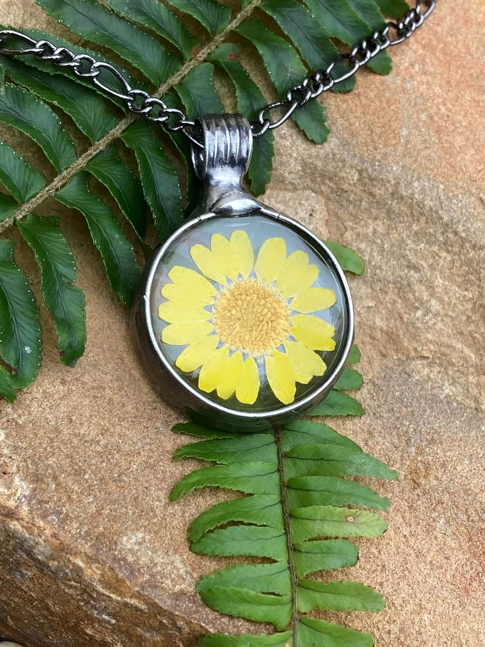 Sunflower Necklace for Women, Real Daisy Pressed Flower Jewelry, Joyeria El Col