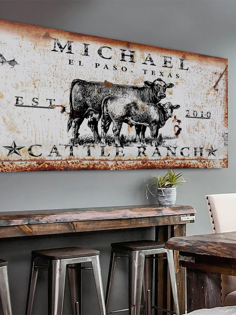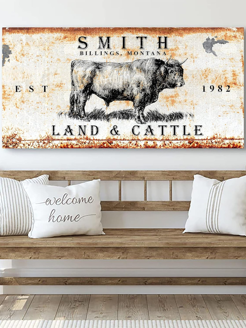 Tailored Canvases Personalized Cattle Ranch Sign Wall Art Decor - Custom Large
